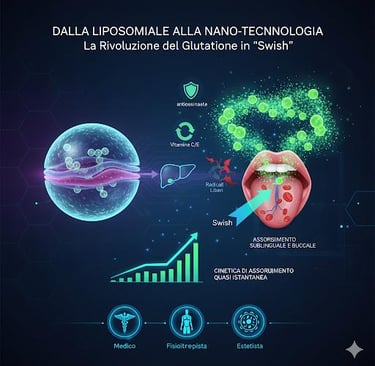 Nel panorama dell’integrazione d'avanguardia, il Glutatione (GSH) è da tempo riconosciuto come il "maestro degli antiossidanti". Tuttavia, la sfida della sua biodisponibilità ha rappresentato per decenni un limite invalicabile. Se la tecnologia liposomiale ha segnato un passo avanti rispetto alle formulazioni orali classiche, oggi la scienza si sposta verso una nuova frontiera: il Nanoglutatione in modalità "Swish"(assorbimento sublinguale e buccale).