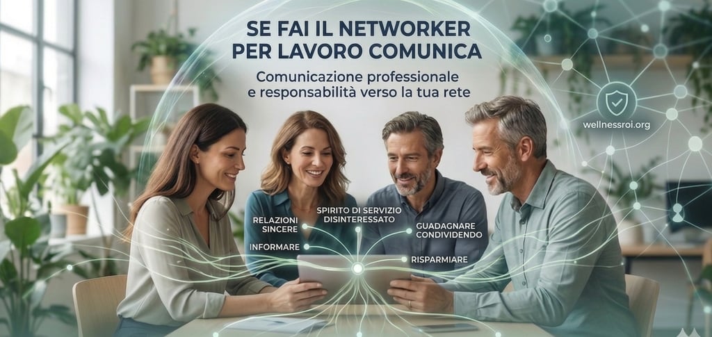 Fare networking in modo professionale significa assumersi il compito di passare informazioni di valore. Non è un atto opzionale; se credi nel progetto di wellnessroi e nell’etica delle aziende partner, informare le persone che conosci e frequenti diventa una responsabilità morale.