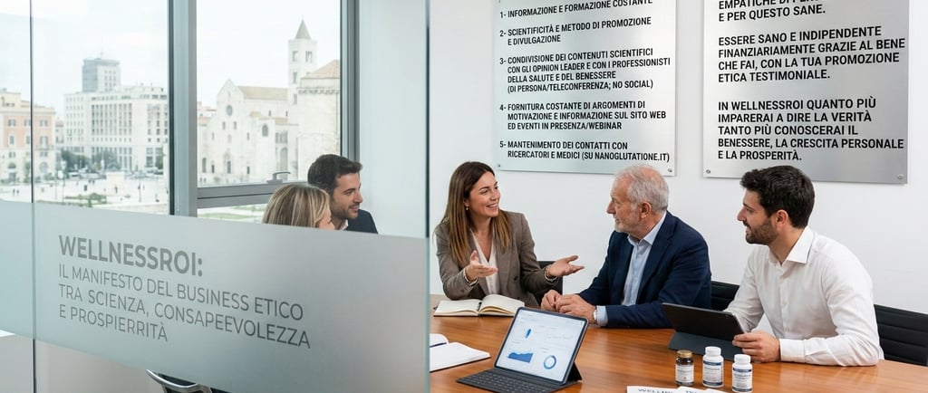 Benvenuti in WellnessROI. Se siete qui, non è per caso. Siete qui perché cercate un modo per coniugare la vostra crescita professionale con un impatto reale sulla salute degli altri. WellnessROI non è semplicemente un’azienda; è un ecosistema dedicato alla salute cellulare, alla longevità e all'indipendenza finanziaria, costruito su un pilastro incrollabile: l’etica della verità.